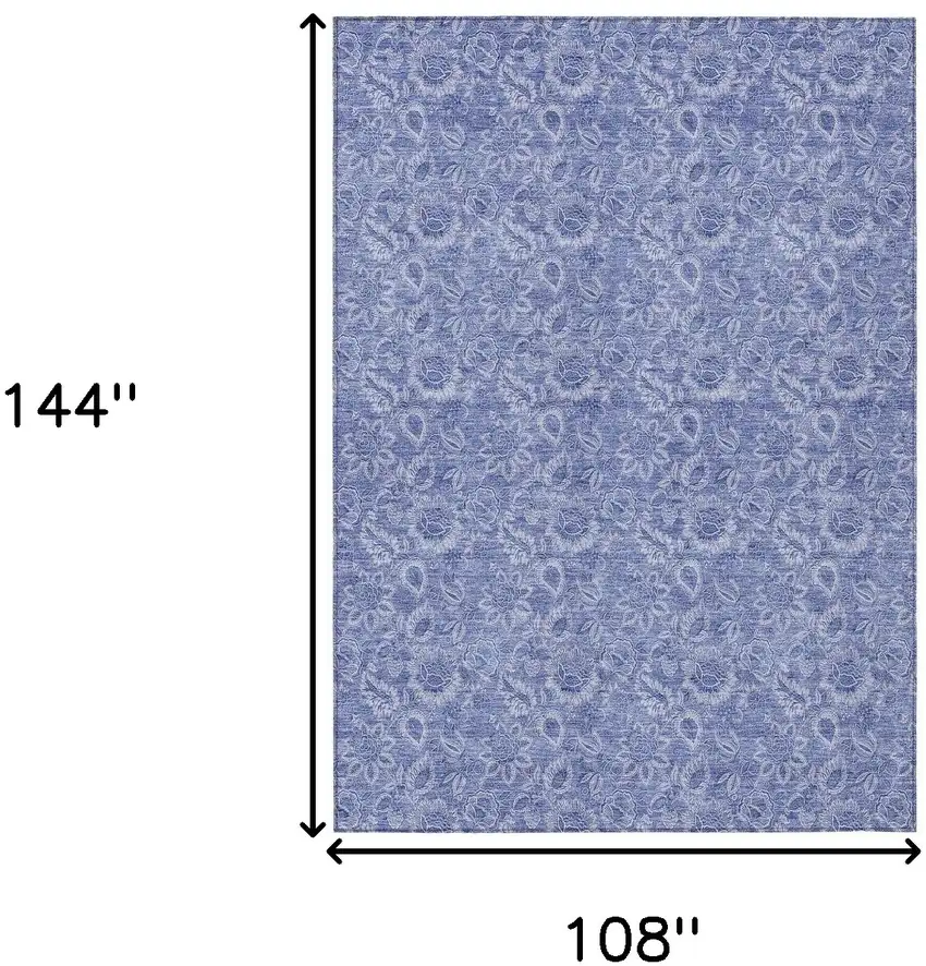 Add some artistry to your room with this 9-foot x 12-foot denim blue and navy blue floral washable indoor outdoor area rug. This rectangle shaped rug features a floral design that will work well both indoors or out. A classic shape marries with good looking design for your living room, hall, bedroom, porch, patio, or poolside. Ideal for outdoor spaces or high traffic areas with kids and pets, this rug is made from heavy duty polyester that is stain resistant to help repel water, dirt, and stains. Versatile in use, durable, and easy to maintain, this rug is an ideal solution to add a decorative and inviting touch to your indoor or outdoor space. 108-inch h x 144-inch w x 0.19-inch d.