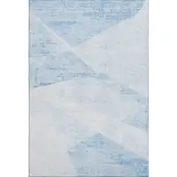 Denim Blue And Silver Moroccan Washable Area Rug With UV Protection