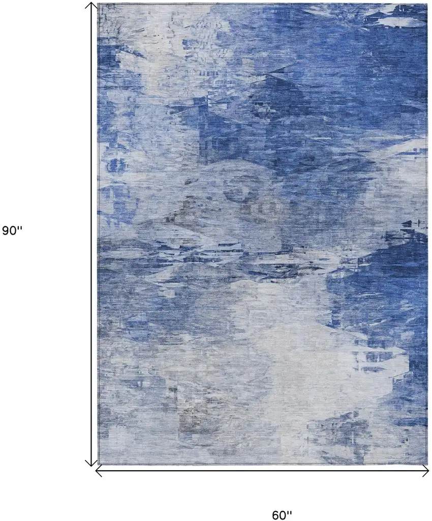 Denim Blue And Sky Blue Abstract Washable Indoor Outdoor Area Rug