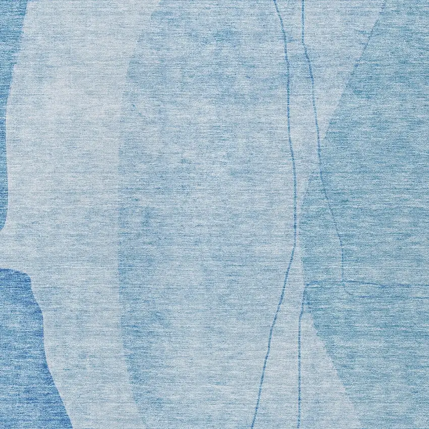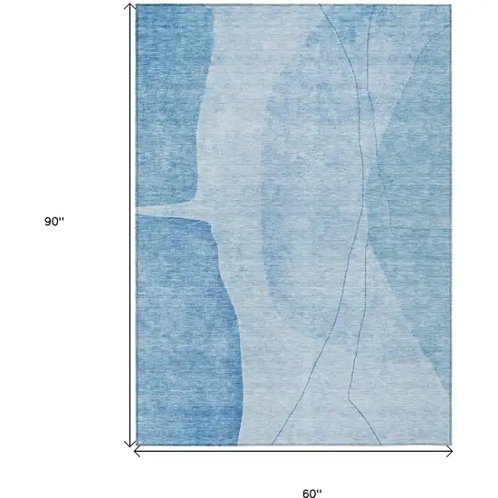 Denim Blue And Sky Blue Abstract Washable Indoor Outdoor Area Rug