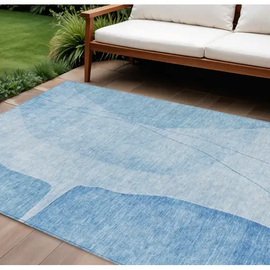 Add great coloration and comfortable texture to your space with this 9-foot x 12-foot denim blue and sky blue abstract washable indoor outdoor area rug. This rectangle shaped rug features a abstract design that will work well both indoors or out. A classic shape marries with good looking design for your living room, hall, bedroom, porch, patio, or poolside. Ideal for outdoor spaces or high traffic areas with kids and pets, this rug is made from heavy duty polyester that is stain resistant to help repel water, dirt, and stains. Versatile in use, durable, and easy to maintain, this rug is an ideal solution to add a decorative and inviting touch to your indoor or outdoor space. 108-inch h x 144-inch w x 0.19-inch d.