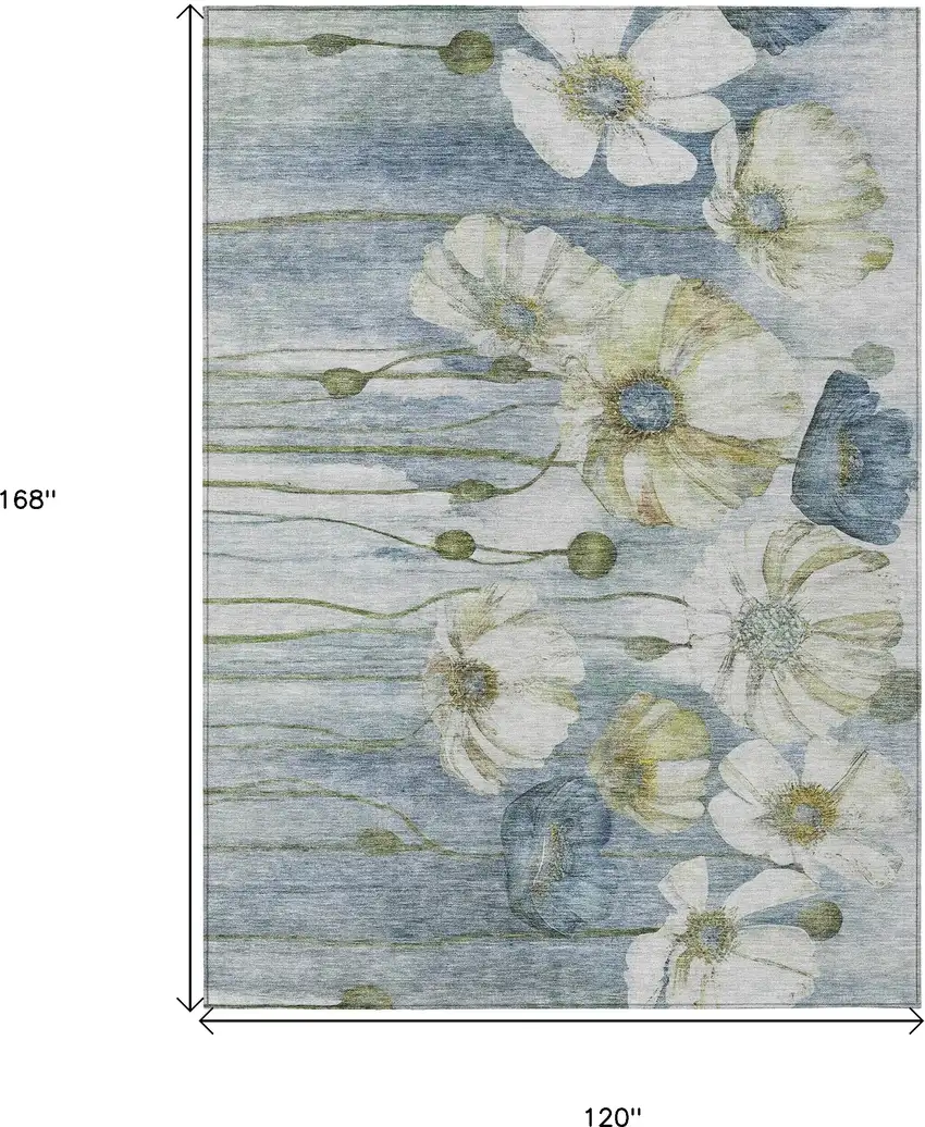 Add great coloration and comfortable texture to your space with this 10-foot x 14-foot denim blue and sky blue floral washable indoor outdoor area rug. This rectangle shaped rug features a floral design that will work well both indoors or out. A classic shape marries with good looking design for your living room, hall, bedroom, porch, patio, or poolside. Ideal for outdoor spaces or high traffic areas with kids and pets, this rug is made from heavy duty polyester that is stain resistant to help repel water, dirt, and stains. Makes a great way to dress up your patio, porch, or poolside, but also works well as a durable and easy to maintain option in the kitchen, family room, or mudroom. 120-inch h x 168-inch w x 0.19-inch d.