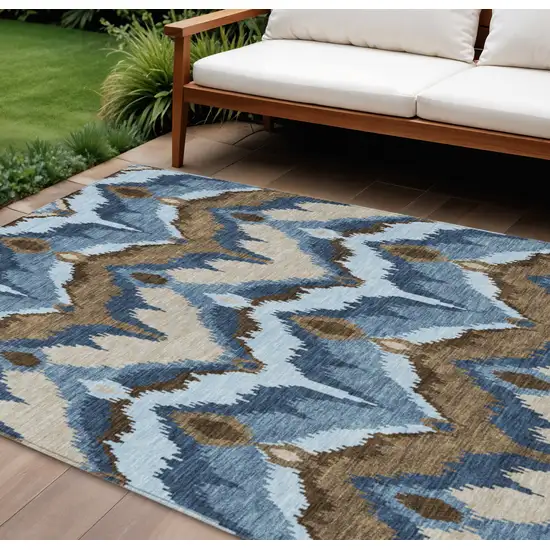 Set an inviting tone in your space with this 10-foot x 14-foot denim blue and sky blue ikat washable indoor outdoor area rug. This rectangle shaped rug features a ikat design that will work well both indoors or out. A classic shape marries with good looking design for your living room, hall, bedroom, porch, patio, or poolside. Ideal for outdoor spaces or high traffic areas with kids and pets, this rug is made from heavy duty polyester that is stain resistant to help repel water, dirt, and stains. Makes a great way to dress up your patio, porch, or poolside, but also works well as a durable and easy to maintain option in the kitchen, family room, or mudroom. 120-inch h x 168-inch w x 0.19-inch d.