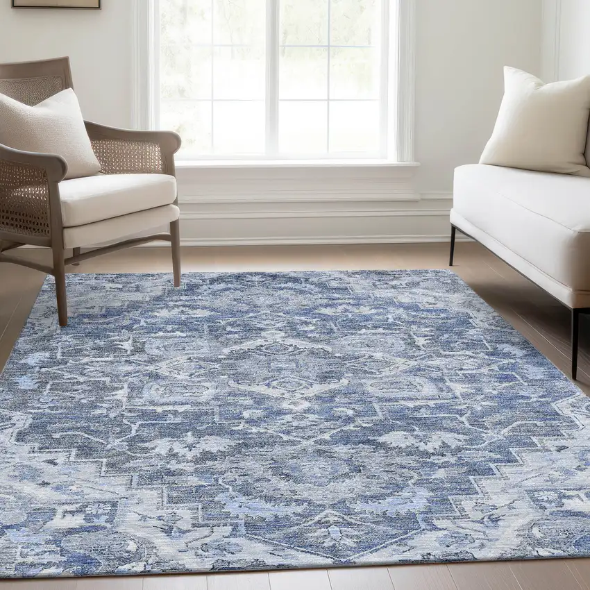 This 10-foot x 14-foot denim blue and sky blue oriental washable indoor outdoor area rug, is a great way to add warmth to a room. This rectangle shaped rug features a oriental design that will work well both indoors or out. A classic shape marries with good looking design for your living room, hall, bedroom, porch, patio, or poolside. Ideal for outdoor spaces or high traffic areas with kids and pets, this rug is made from heavy duty polyester that is stain resistant to help repel water, dirt, and stains. Makes a great way to dress up your patio, porch, or poolside, but also works well as a durable and easy to maintain option in the kitchen, family room, or mudroom. 120-inch h x 168-inch w x 0.19-inch d.