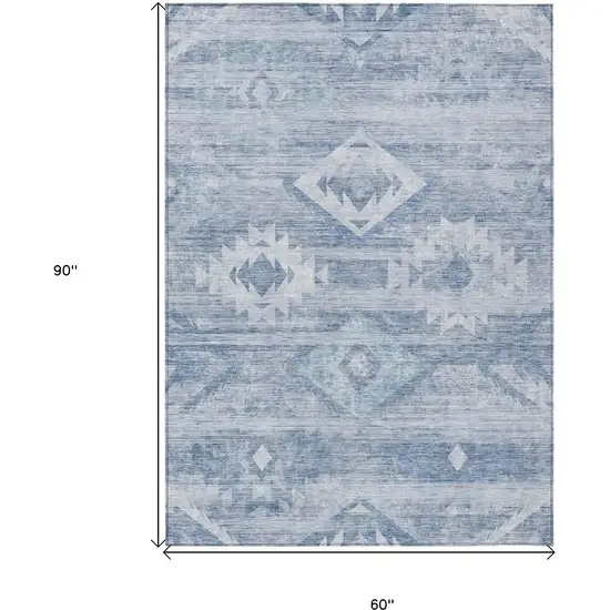 This 5-foot x 8-foot denim blue and sky blue southwestern washable indoor outdoor area rug, is a great way to add warmth to a room. This rectangle shaped rug features a southwestern design that will work well both indoors or out. A classic shape marries with good looking design for your living room, hall, bedroom, porch, patio, or poolside. Ideal for outdoor spaces or high traffic areas with kids and pets, this rug is made from heavy duty polyester that is stain resistant to help repel water, dirt, and stains. Makes a great way to dress up your patio, porch, or poolside, but also works well as a durable and easy to maintain option in the kitchen, family room, or mudroom. 60-inch h x 90-inch w x 0.19-inch d.