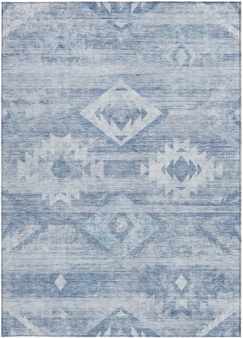 Denim Blue And Sky Blue Southwestern Washable Indoor Outdoor Area Rug