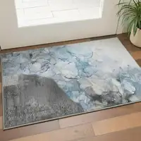 Denim Blue Ivory And Gray Striped Washable Area Rug With UV Protection
