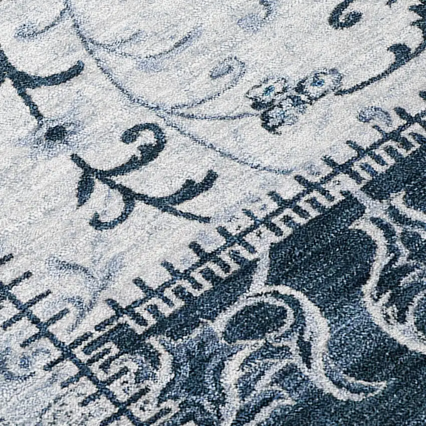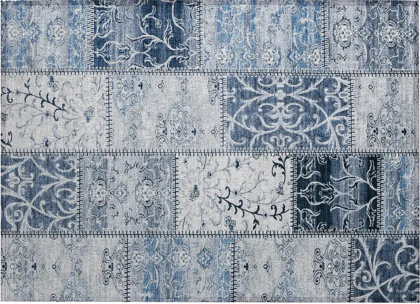 Denim Blue Patchwork Washable Non Skid Indoor Outdoor Area Rug