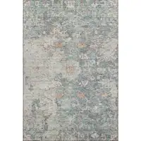 Denim Blue Rust And Beige Damask Washable Area Rug With UV Protection