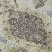 Eggplant And Ivory Floral Washable Area Rug With UV Protection