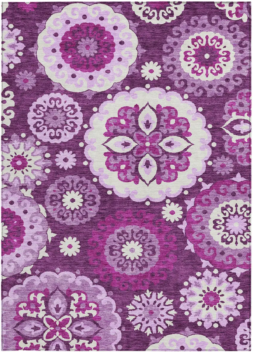 Set an inviting tone in your space with this 9-foot x 12-foot eggplant and mauve floral medallion washable indoor outdoor area rug. This rectangle shaped rug features a floral medallion design that will work well both indoors or out. A classic shape marries with good looking design for your living room, hall, bedroom, porch, patio, or poolside. Ideal for outdoor spaces or high traffic areas with kids and pets, this rug is made from heavy duty polyester that is stain resistant to help repel water, dirt, and stains. Versatile in use, durable, and easy to maintain, this rug is an ideal solution to add a decorative and inviting touch to your indoor or outdoor space. 108-inch h x 144-inch w x 0.19-inch d.