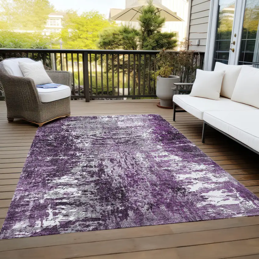 Add some artistry to your room with this 9-foot x 12-foot eggplant purple and lavender abstract washable indoor outdoor area rug. This rectangle shaped rug features a abstract design that will work well both indoors or out. A classic shape marries with good looking design for your living room, hall, bedroom, porch, patio, or poolside. Ideal for outdoor spaces or high traffic areas with kids and pets, this rug is made from heavy duty polyester that is stain resistant to help repel water, dirt, and stains. Makes a great way to dress up your patio, porch, or poolside, but also works well as a durable and easy to maintain option in the kitchen, family room, or mudroom. 108-inch h x 144-inch w x 0.19-inch d.