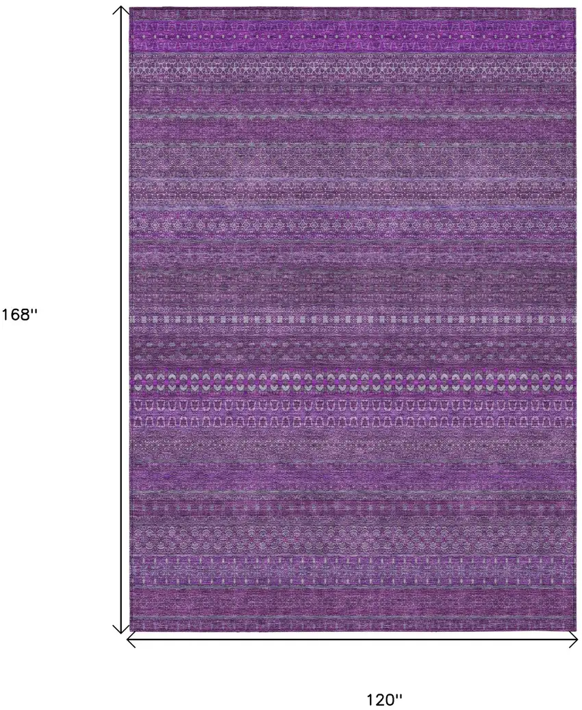 Add some artistry to your room with this 10-foot x 14-foot eggplant striped washable stain resistant non skid indoor outdoor area rug. This rectangle shaped rug features a striped design in eggplant to give it visual interest. A classic shape marries with good looking design for your space ideal for spaces with kids and pets, this rug is stain resistant to help repel stains and spilled liquids. Area rugs help to give warmth and sense of home to your space. 120-inch H x 168-inch W x 0.19-inch D