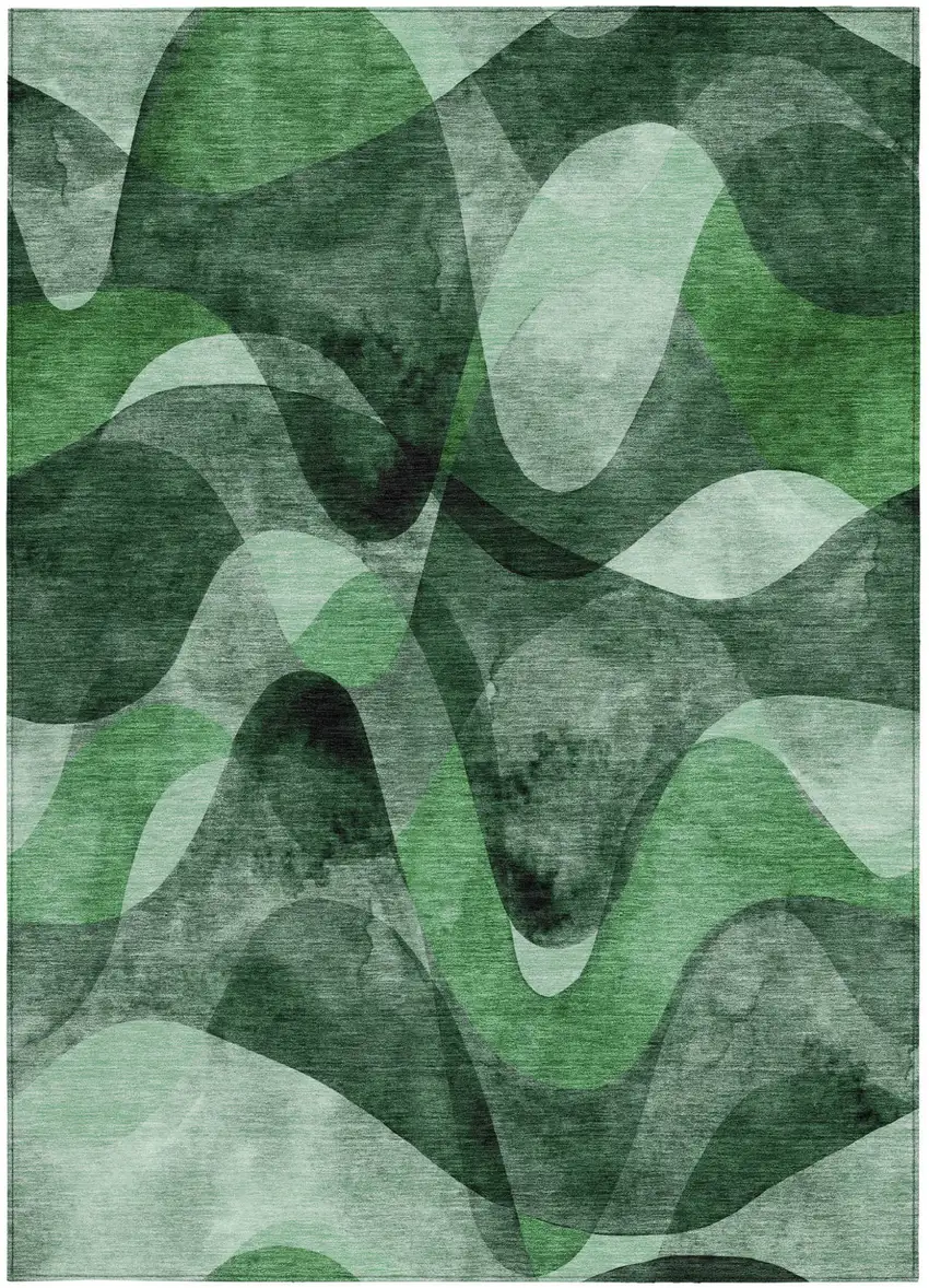 Fern Green Abstract Washable Non Skid Indoor Outdoor Area Rug