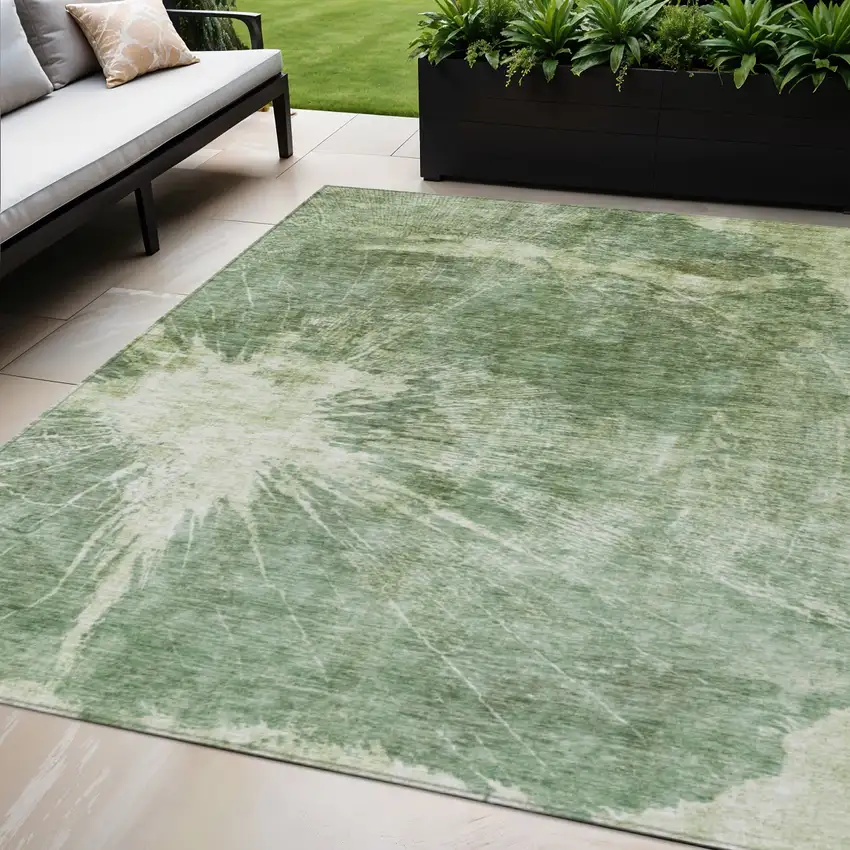 Add some artistry to your room with this 8-foot x 10-foot fern green and artichoke green abstract washable indoor outdoor area rug. This rectangle shaped rug features a abstract design that will work well both indoors or out. A classic shape marries with good looking design for your living room, hall, bedroom, porch, patio, or poolside. Ideal for outdoor spaces or high traffic areas with kids and pets, this rug is made from heavy duty polyester that is stain resistant to help repel water, dirt, and stains. Makes a great way to dress up your patio, porch, or poolside, but also works well as a durable and easy to maintain option in the kitchen, family room, or mudroom. 96-inch h x 120-inch w x 0.19-inch d.