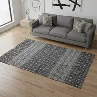 This 5-foot x 8-foot fern green and copper geometric washable area rug with uv protection, is a great way to add warmth to a room. Ideal for spaces with kids and pets, this rug is stain resistant to help repel dirt and spilled liquids. Built to last, this rug crafted from polyester fibers is known for its durability and long lasting appeal. Rugs are a great way to showcase your style, hide imperfections, warm your home and reduce noise. This larger sized, transitional styled rug is ready to create a focal point or statement piece in your room. 60.00-inch h x 90.00-inch w x 0.39-inch d.