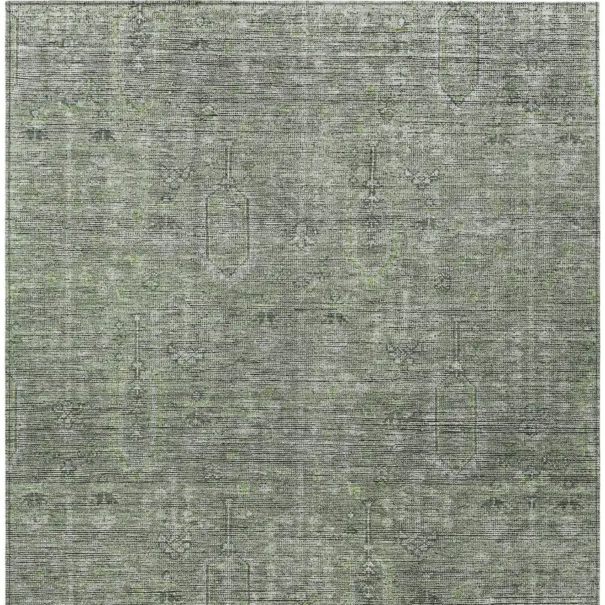 Fern Green And Gray Southwestern Washable Indoor Outdoor Area Rug