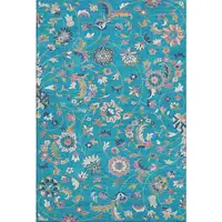 Fern Green Blue And Red Striped Washable Area Rug With UV Protection