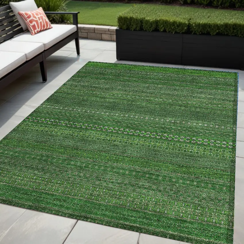 Fern Green Striped Washable Non Skid Indoor Outdoor Area Rug