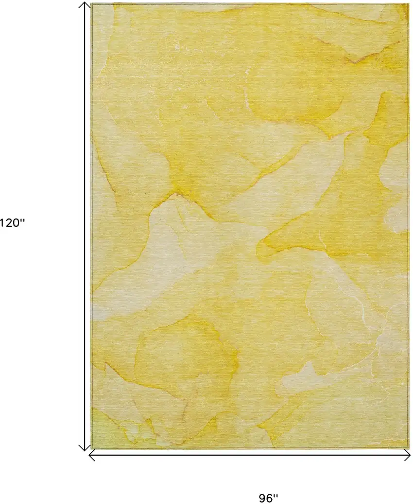 Gold Abstract Washable Non Skid Indoor Outdoor Area Rug