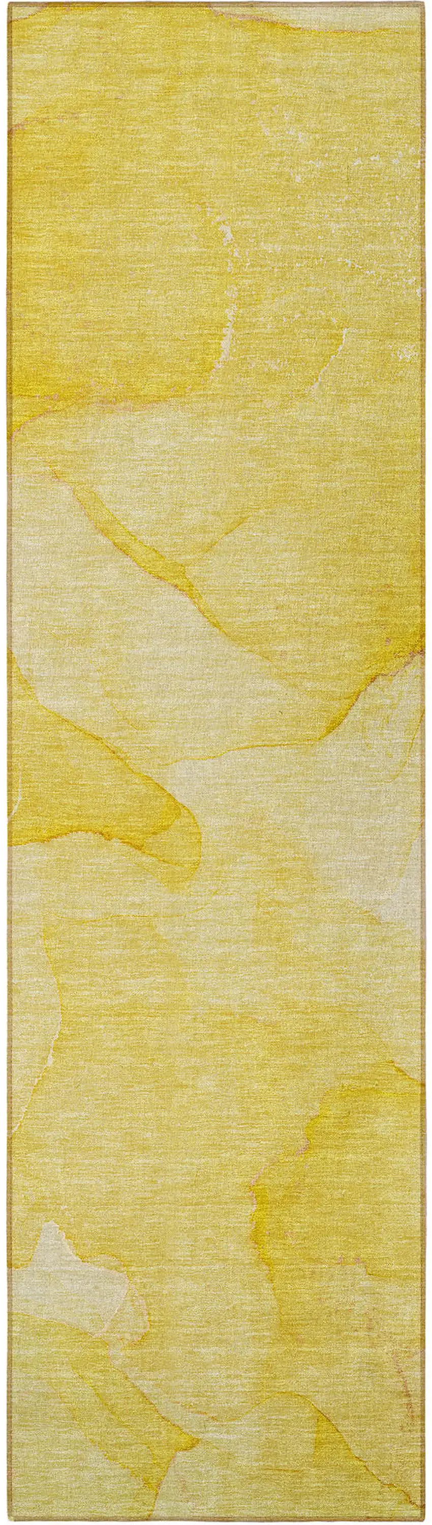 Gold Abstract Washable Non Skid Indoor Outdoor Runner Rug