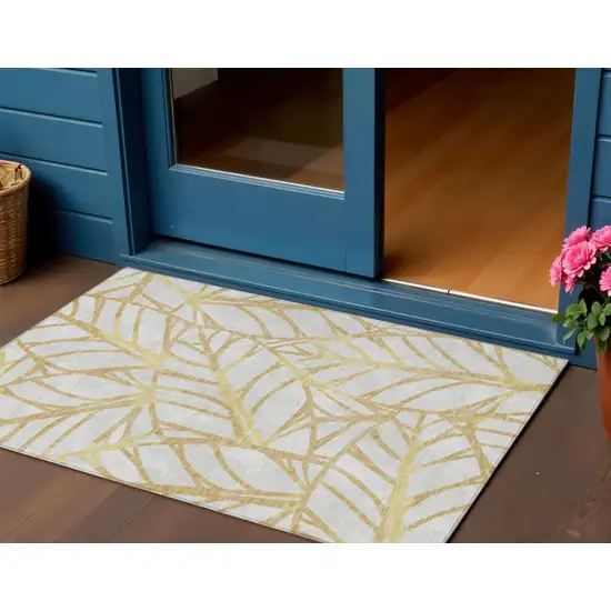 Gold And Beige Floral Washable Indoor Outdoor Area Rug