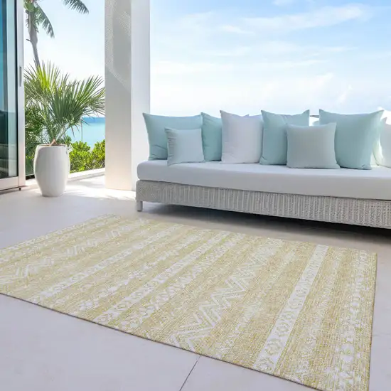 Gold And Beige Southwestern Washable Indoor Outdoor Area Rug