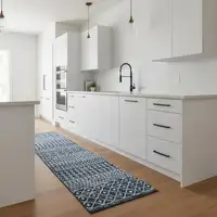 Inject a touch of style and comfort into your home with this green and gold runner rug. It not only provides a unique visual appeal but also enhances walking comfort due to its soft texture.