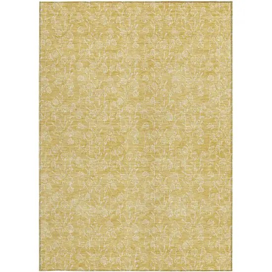 Gold And Ivory Floral Washable Indoor Outdoor Area Rug
