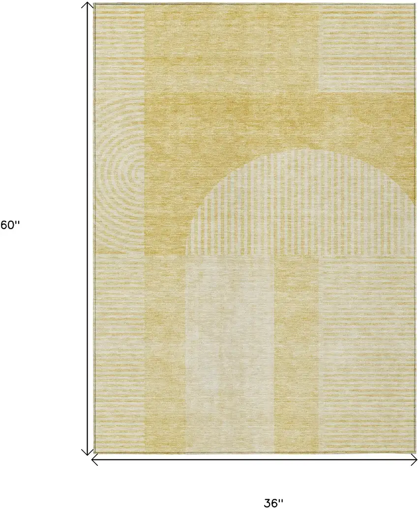 Gold And Ivory Geometric Washable Indoor Outdoor Area Rug