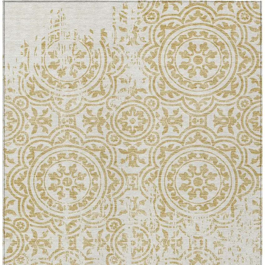 Gold And Ivory Medallion Washable Indoor Outdoor Area Rug