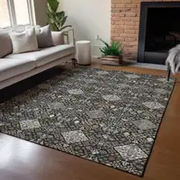 Gold And Teal Blue Floral Washable Indoor Outdoor Area Rug