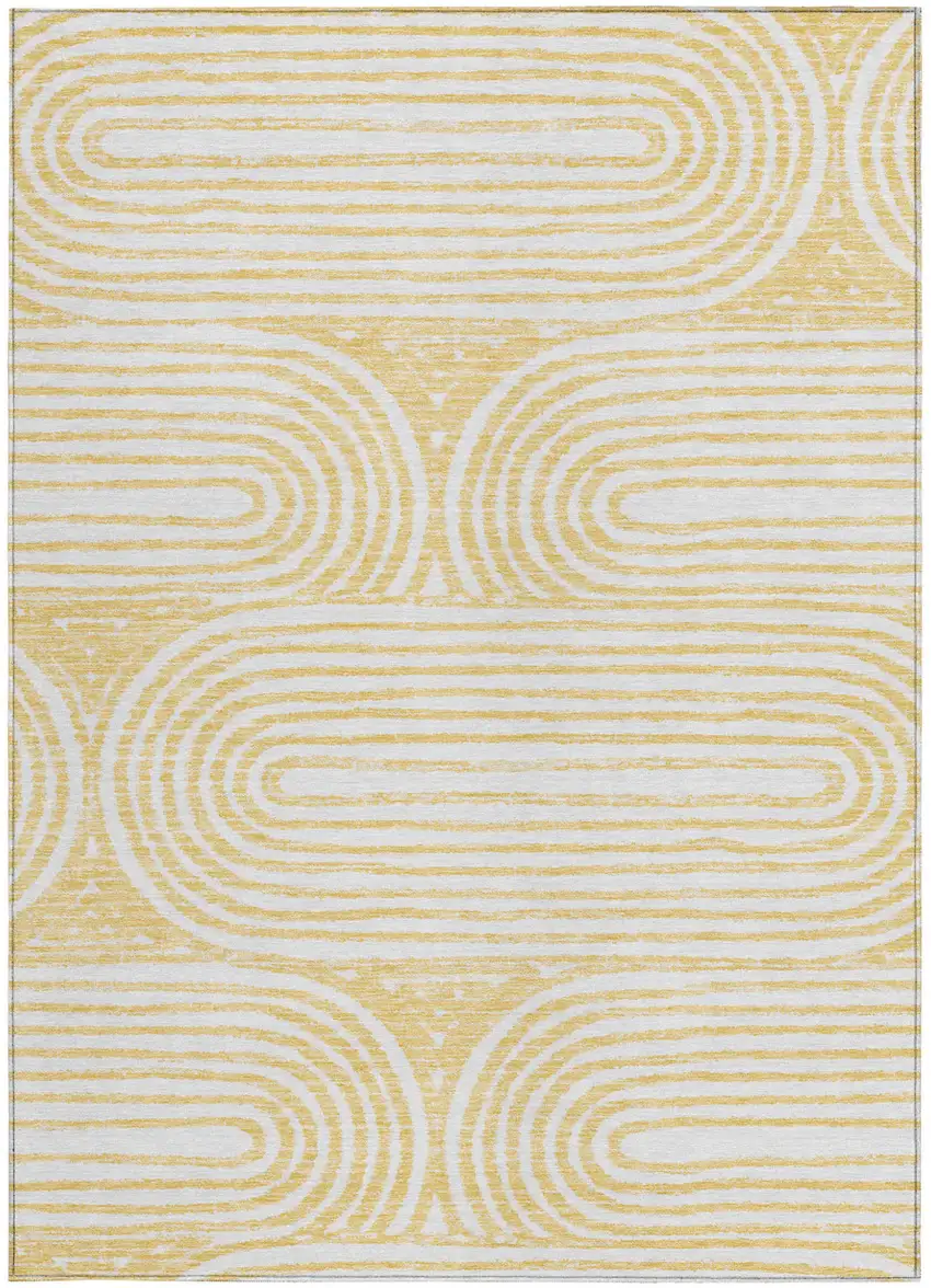 Gold and White Abstract Washable Non Skid Indoor Outdoor Area Rug