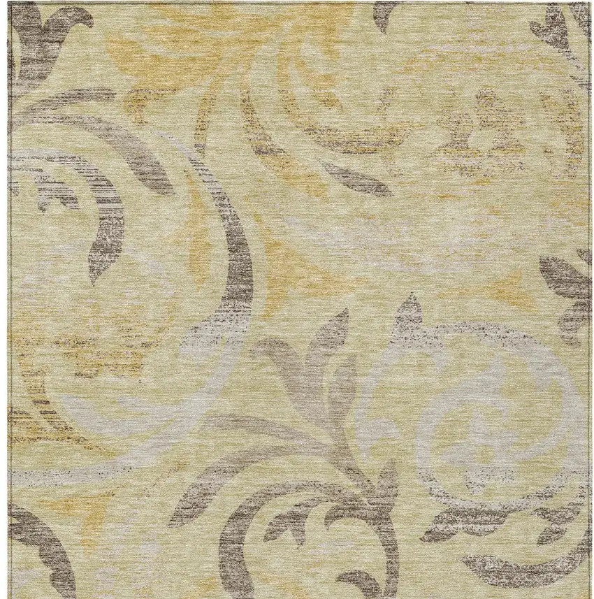 Gold Beige And Taupe Floral Washable Indoor Outdoor Area Rug