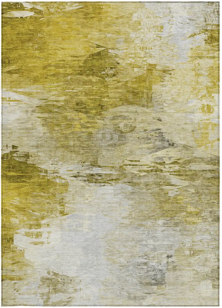 Gold Beige And Wheat Abstract Washable Indoor Outdoor Area Rug