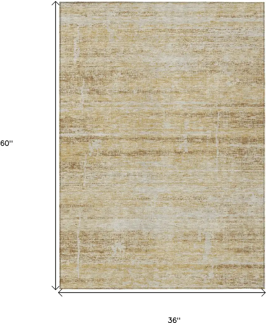 Gold Beige And Wheat Abstract Washable Indoor Outdoor Area Rug