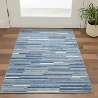Gold Blue And Ivory Geometric Washable Area Rug With UV Protection