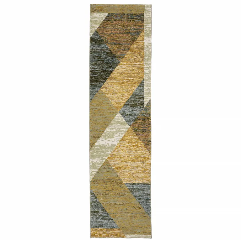 Gold Blue Green Rust Beige Purple And Teal Geometric Power Loom Stain Resistant Runner Rug