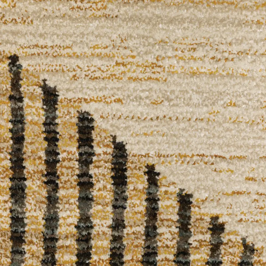 With its intricate geometric design, this rug effortlessly combines modern aesthetics with timeless elegance. The combination of gold, brown, blue, charcoal, rust, and beige tones creates a visually captivating pattern that will become the focal point of any room. Whether you have a modern, traditional, or eclectic style, this rug will seamlessly blend in and enhance your existing décor.