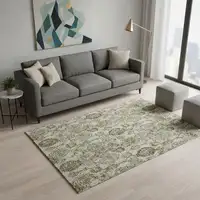 This 5-foot x 8-foot gold gray and ivory abstract washable area rug with uv protection, is a great way to add warmth to a room. Ideal for spaces with kids and pets, this rug is stain resistant to help repel dirt and spilled liquids. Built to last, this rug crafted from polyester fibers is known for its durability and long lasting appeal. Rugs are a great way to showcase your style, hide imperfections, warm your home and reduce noise. This larger sized, transitional styled rug is ready to create a focal point or statement piece in your room. 60.00-inch h x 90.00-inch w x 0.39-inch d.