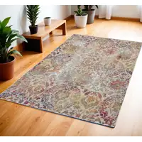 Gold Gray And Silver Abstract Washable Area Rug With UV Protection