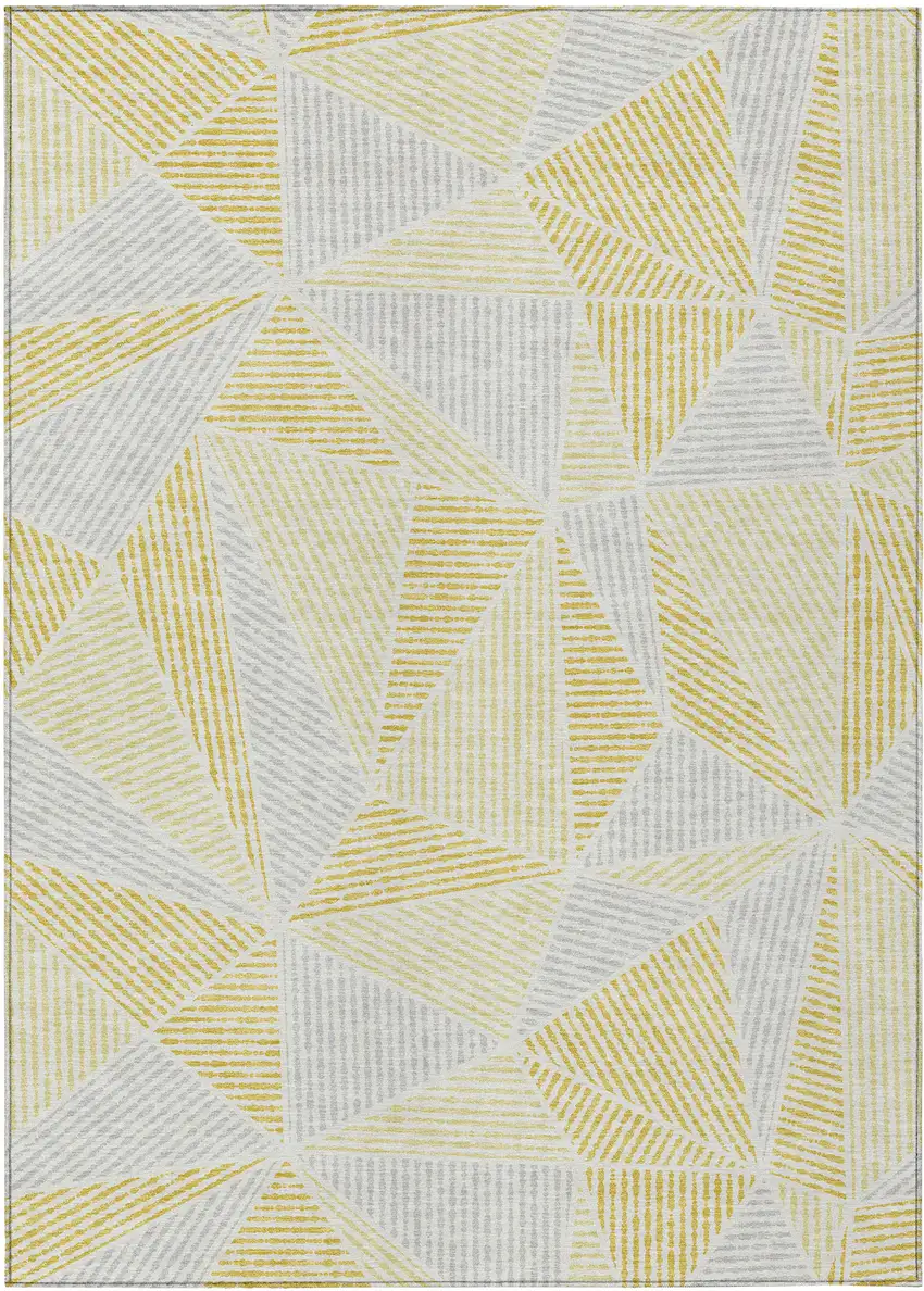 Add great coloration and comfortable texture to your space with this 8-foot x 10-foot gold gray and wheat geometric washable indoor outdoor area rug. This rectangle shaped rug features a geometric design that will work well both indoors or out. A classic shape marries with good looking design for your living room, hall, bedroom, porch, patio, or poolside. Ideal for outdoor spaces or high traffic areas with kids and pets, this rug is made from heavy duty polyester that is stain resistant to help repel water, dirt, and stains. Versatile in use, durable, and easy to maintain, this rug is an ideal solution to add a decorative and inviting touch to your indoor or outdoor space. 96-inch h x 120-inch w x 0.19-inch d.