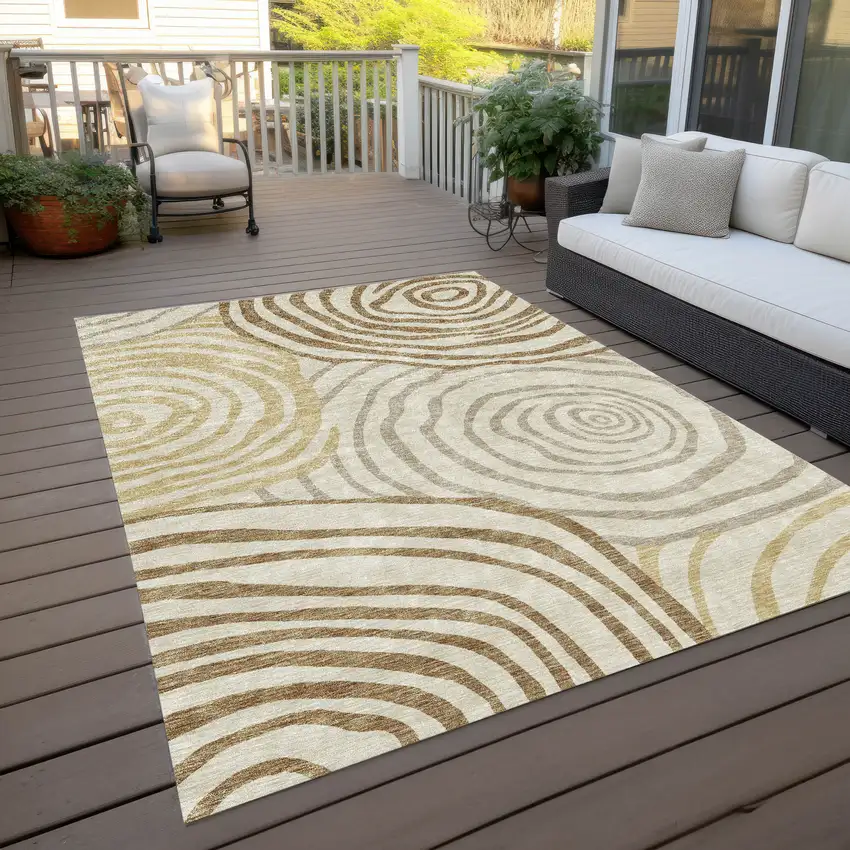 Gold Ivory And Beige Abstract Washable Indoor Outdoor Area Rug