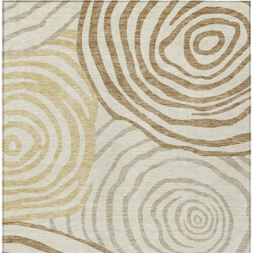 Gold Ivory And Beige Abstract Washable Indoor Outdoor Area Rug