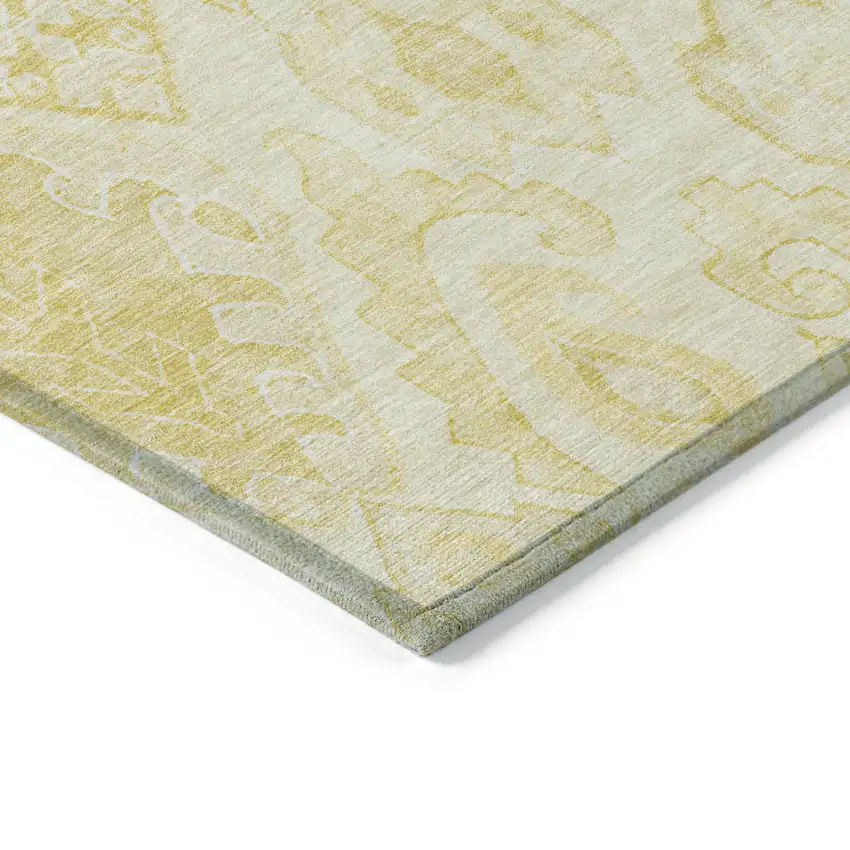 Add some artistry to your room with this 5-foot x 8-foot gold ivory and beige moroccan washable indoor outdoor area rug. This rectangle shaped rug features a moroccan design that will work well both indoors or out. A classic shape marries with good looking design for your living room, hall, bedroom, porch, patio, or poolside. Ideal for outdoor spaces or high traffic areas with kids and pets, this rug is made from heavy duty polyester that is stain resistant to help repel water, dirt, and stains. Makes a great way to dress up your patio, porch, or poolside, but also works well as a durable and easy to maintain option in the kitchen, family room, or mudroom. 60-inch h x 90-inch w x 0.19-inch d.
