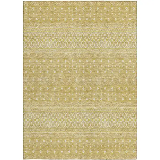 Set an inviting tone in your space with this 10-foot x 14-foot gold ivory and taupe tribal washable indoor outdoor area rug. This rectangle shaped rug features a tribal design that will work well both indoors or out. A classic shape marries with good looking design for your living room, hall, bedroom, porch, patio, or poolside. Ideal for outdoor spaces or high traffic areas with kids and pets, this rug is made from heavy duty polyester that is stain resistant to help repel water, dirt, and stains. Versatile in use, durable, and easy to maintain, this rug is an ideal solution to add a decorative and inviting touch to your indoor or outdoor space. 120-inch h x 168-inch w x 0.19-inch d.