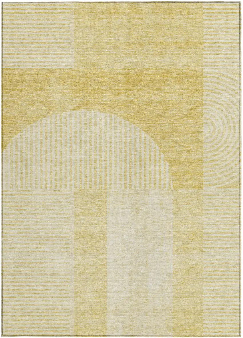 Gold Ivory And Yellow Geometric Washable Indoor Outdoor Area Rug