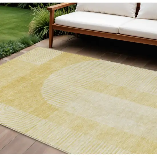Gold Ivory And Yellow Geometric Washable Indoor Outdoor Area Rug
