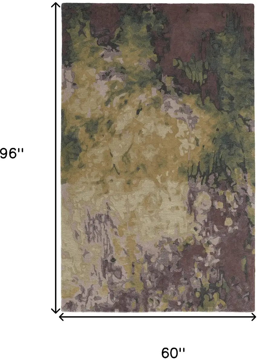 Gold Purple And Green Wool Abstract Tufted Handmade Stain Resistant Area Rug