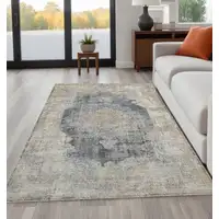 Gold Taupe And Ivory Striped Washable Area Rug With UV Protection